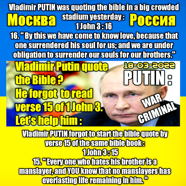 2nd.Putin made a bible-quote yesterday in a big crowded stadium in moscow Russia, but he forgot something.. to read verse 15 of john 3. So funny... here the photo's: #russia #kremlin #putin #Ukraine #UkraineRussiaWar #news