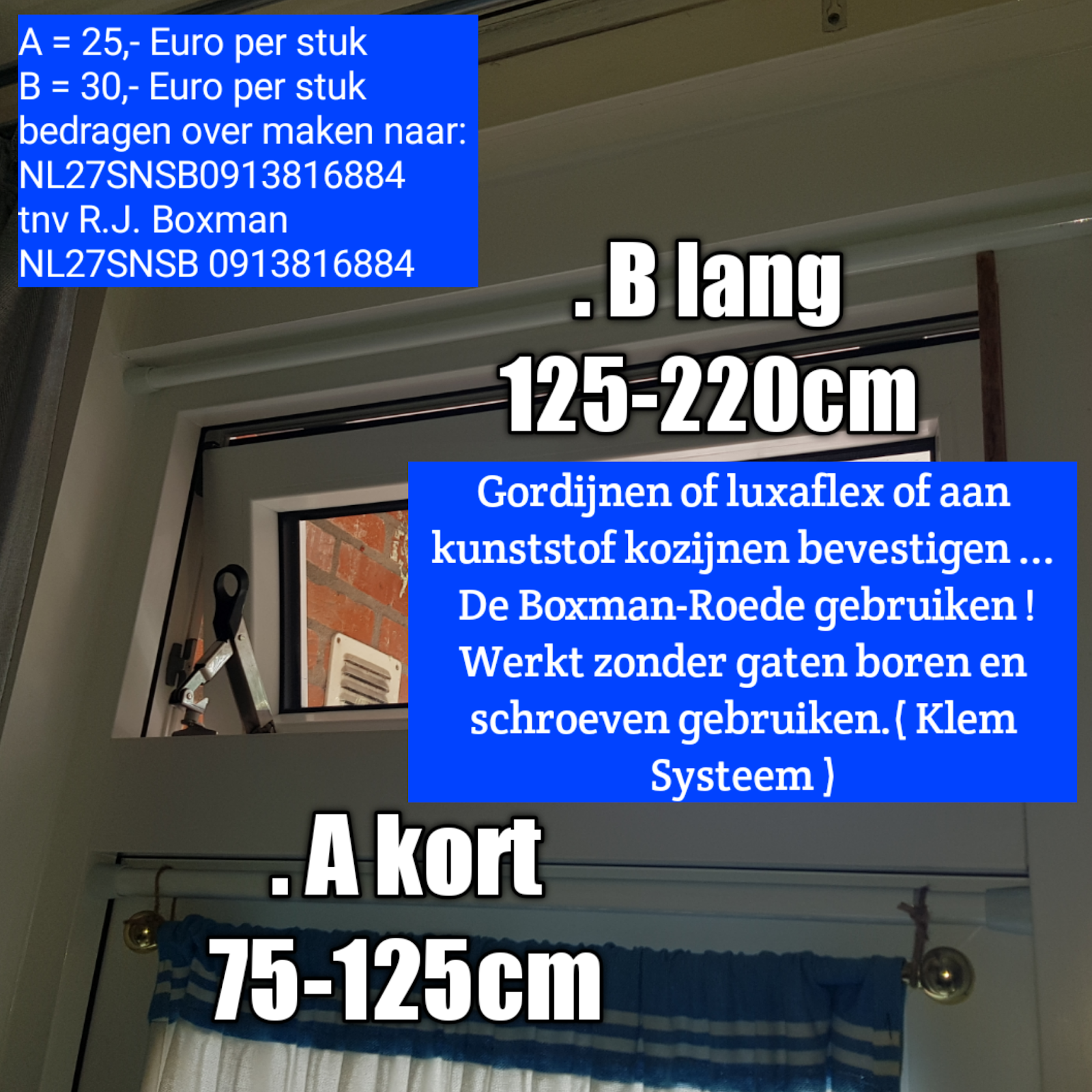 Gordijnen of Luxaflex of lamellen bevestigen aan Kunststof Kozijnen is geen probleem. De Boxman Roede gebruiken ! Werkt zonder gaten boren en schroeven gebruiken. Boren in kozijnen mag niet eens van de woning-bouwver. #kozijnen #gordijnen #luxaflex #RudyBoxman #RJBTEAM klem syst.